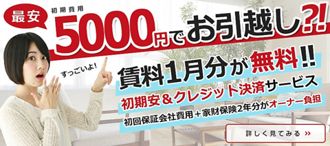 ※初期安プランは物件に限りがございます。ご希望のエリアに対象物件がない場合は初期費用全額クレジット決済(分割)でのお支払いも可能です。