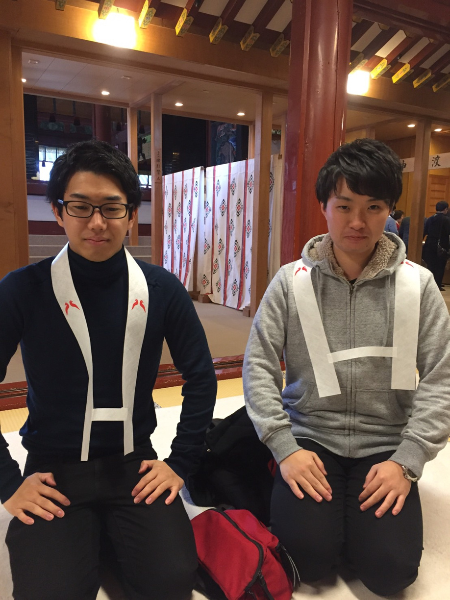 厄払いをしてもらい神妙な面持ちの2人。